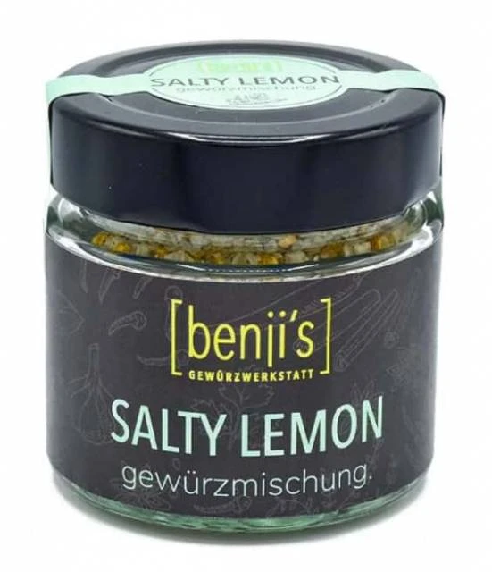 Salty lemon Gewürzmischung von Benjis Gewürzwerkstatt ist eine hochwertige Mischung aus Indischen Sonnenflocken (Salz) und Zitrone