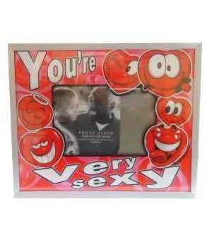 Bilderrahmen mit Herzgesichtern und dem Spruch You´re very Sexy in der Größe 22 x 18 cm für Bilder im Format 9 x 13 cm