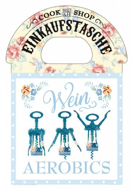 Kleine Einkaufstasche mit Blumen Muster aus der Cook Shop Serie mit dem Spruch – Weinaerobics