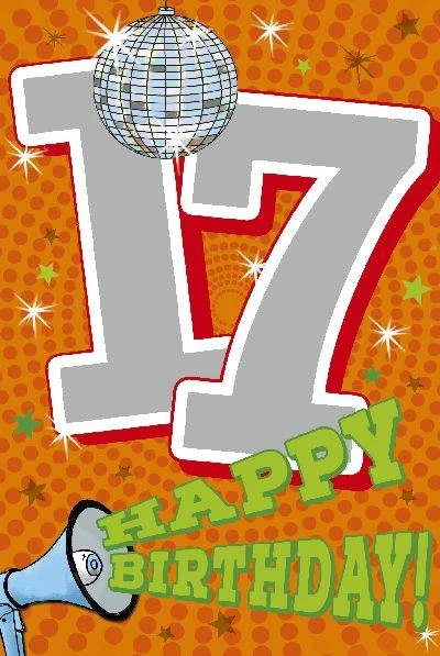 Depesche Glückwunschkarte zum 17. Geburtstag in Orange mit Mikrophon vorne. Die Geburtstagskarte zum 17. Geburtstag spielt das Lied * Don´t Stop the Music *.