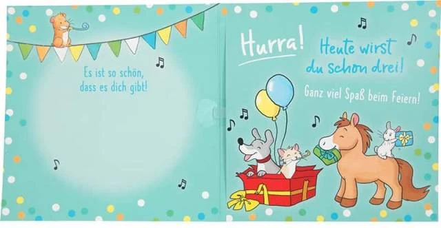 Die Geburtstagskarte zum 3. Geburtstag spielt das Lied * Alles Gute zum Geburtstagt *.