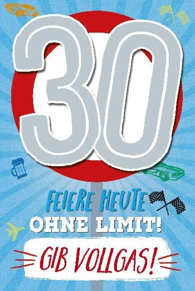Depesche Glückwunschkarte zum 30. Geburtstag in Blau mit Spruch * feiere heute ohne limit gib vollgas * vorne. Die Geburtstagskarte zum 30. Geburtstag spielt das Lied * i got you – i feel good *.