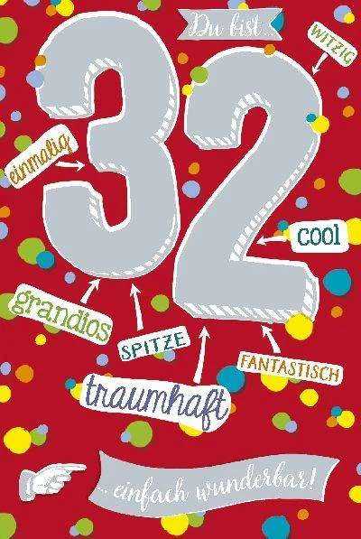 Depesche Glückwunschkarte zum 32. Geburtstag in Rot mit Sprüchen vorne. Die Geburtstagskarte zum 32. Geburtstag spielt das Lied * good time *.