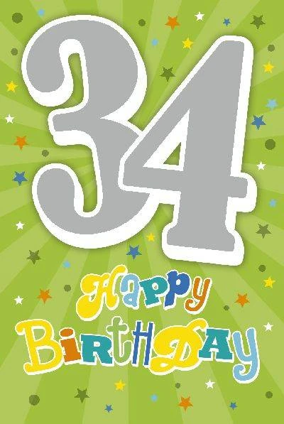 Depesche Glückwunschkarte zum 34. Geburtstag in Grün mit Spruch * Happy Birthday * vorne. Die Geburtstagskarte zum 34. Geburtstag spielt das Lied * best day of my life *.