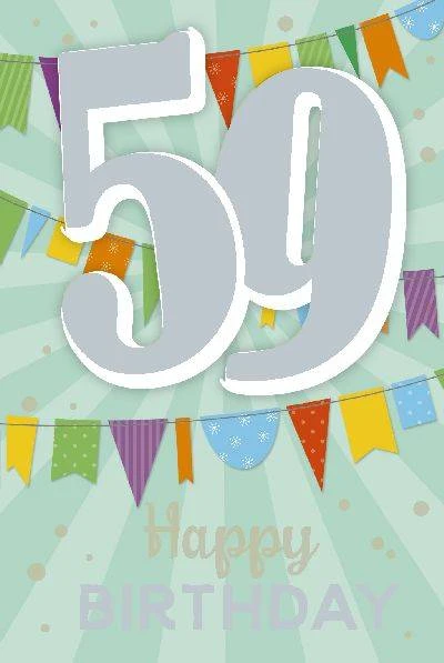 Depesche Glückwunschkarte zum 59. Geburtstag in Grün mit Spruch * happy birthday * vorne. Die Geburtstagskarte zum 59. Geburtstag spielt das Lied * chicks and balls *.