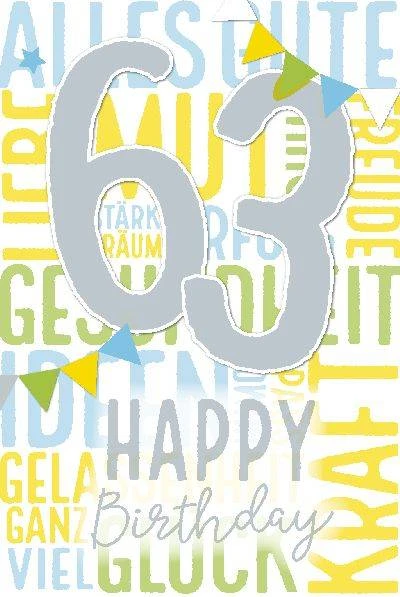 Depesche Glückwunschkarte zum 63. Geburtstag in Weiß mit Spruch * happy birthday * vorne. Die Geburtstagskarte zum 63. Geburtstag spielt das Lied * happy birthday – dj bobo *.