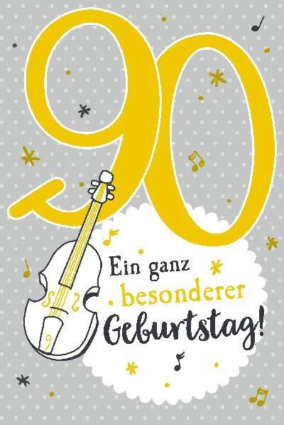 Depesche Glückwunschkarte zum 90. Geburtstag in Silber mit Spruch * Ein ganz besonderer Geburtstag * vorne. Die Geburtstagskarte zum 90. Geburtstag spielt das Lied * Zum Geburtstag viel Glück *.