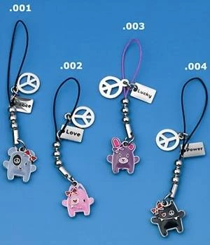 Der Handyanhänger hat eine Länge von ca. 4,5 cm (Figur und Symbole- ohne Befestigungsseil)