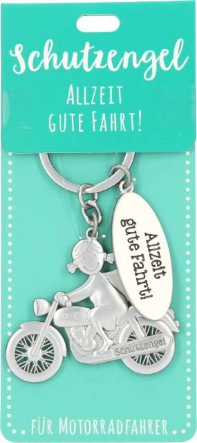 Die Schutzengel Anhänger hat ein kleines Motorrad mit Schutzengel als Motiv sowie den Spruch * Allzeit gute Fahrt *