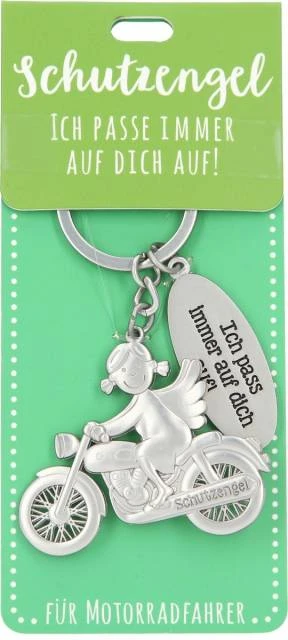 Ein kleines Motorrad mit Schutzengel ist dieser schöne Schlüsselanhänger aus dem Hause Depesche.