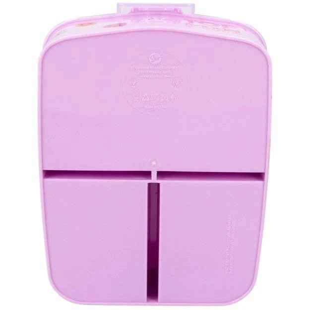 Die schicke Brotdose hat ein großes Hauptfach unten sowie oben noch 3 Fächer – genug Platz für Frühstücksbrot und ein wenig Obst
