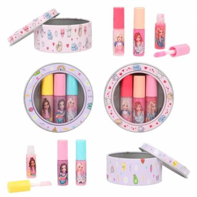 In der kleinen Metallbox sind jeweils 3 verschiedene Lipgloss enthalten die nach Cola, Blaubeere oder Apfel schmecken.