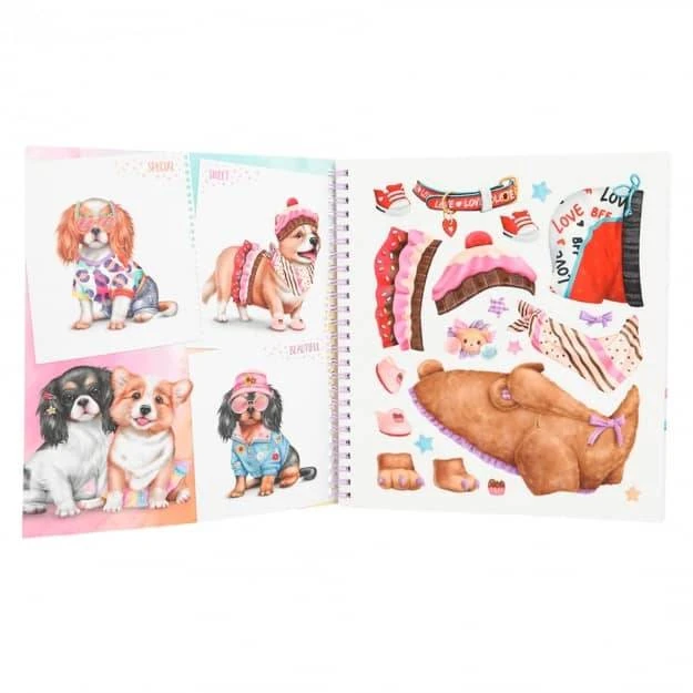 Niedliche Hunde kann man hier im TopModel Malbuch nach seinen Wünschen ausmalen und verschönern.
