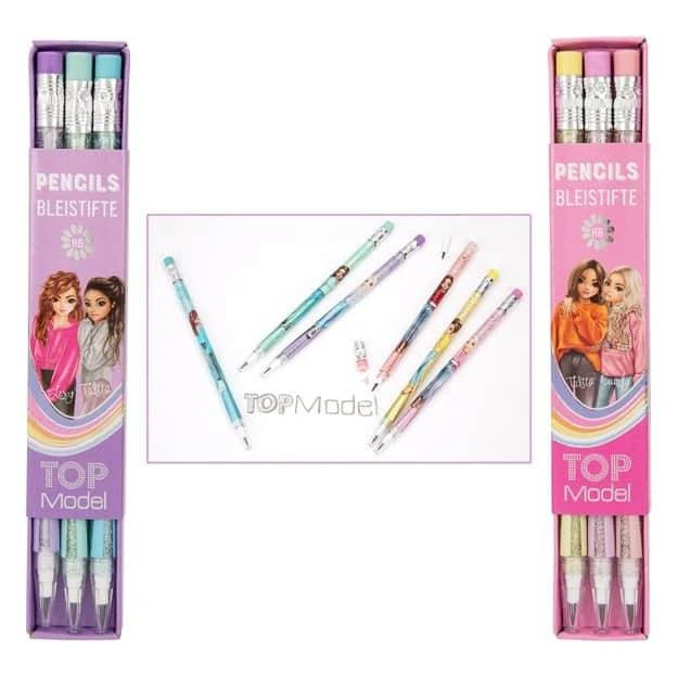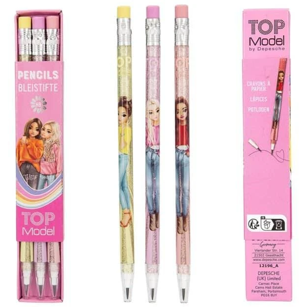 In diesem TopModel Bleistift Set sind insgesamt jeweils 3 unterschiedliche Bleistifte enthalten die jeweils Coole TopModel Motive haben.