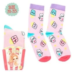 Die schicken TopModel Socken Cutie Star von Depesche sind besonders niedlich gestaltet – mit kleinen Katzen und Popcorntüten.