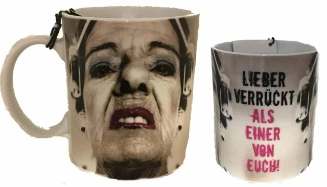 Große Porzellan Tasse aus der Undercover Serie mit der Aufschrift: Lieber Verrückt als einer von Euch!