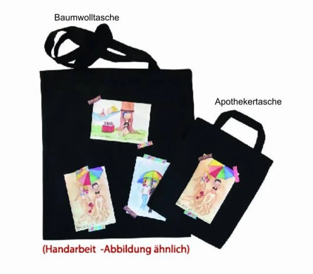 Aus dem Hause Happy&Odd kommt diese schöne schwarze Baumwollhandtasche mit Coolen Aufdruck aus der Postkarten Serie von Happy&Odd