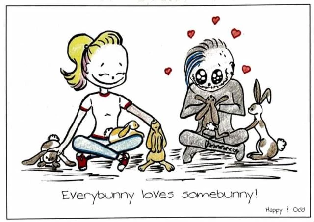* Everybunny loves somebunny! * so steht es auf der schön gestateten Postkarte von Happy&Odd und ist ja nicht nur für Hasen liebhaber