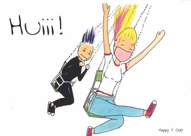 Die etwas andere Einladung zu einem Besuch auf dem Rummel oder Freizeitpark ist diese wunderschöne Happy&Odd Postkarte Huiii!