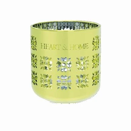 Formschöner Teelichthalter in Metallic Grünund Blumen Motiv von Heart and Home.