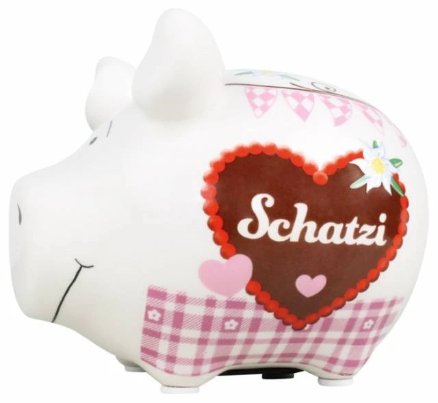 Diess kleine Sparschwein mit Aufschrift Schatzi kann dabei bestimmt helfen