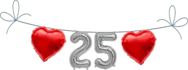 Metall Folien Ballon Set 25 (mit Herzen) zum Dekorieren von Party, Geburtstag usw. Kombinieren Sie weitere Ballon Zahlen oder Buchstaben um Ihr Individuellen Spruch zu erstellen.