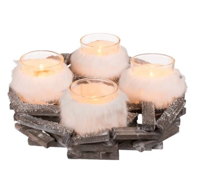 Holen Sie sich mit dem schönen Holz – Adventskranz ein Stück Weihnachtsfreude nach Hause und zünden Sie eine Kerze nach der anderen an.