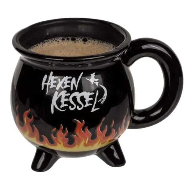 Bei diesem Becher wird es bestimmt ganz Heiß, denn sobald eine warme Flüssigkeit in den Becher geschüttet wird, fängt das Feuer unter dem Hexenkessel an sich zu entzünden.