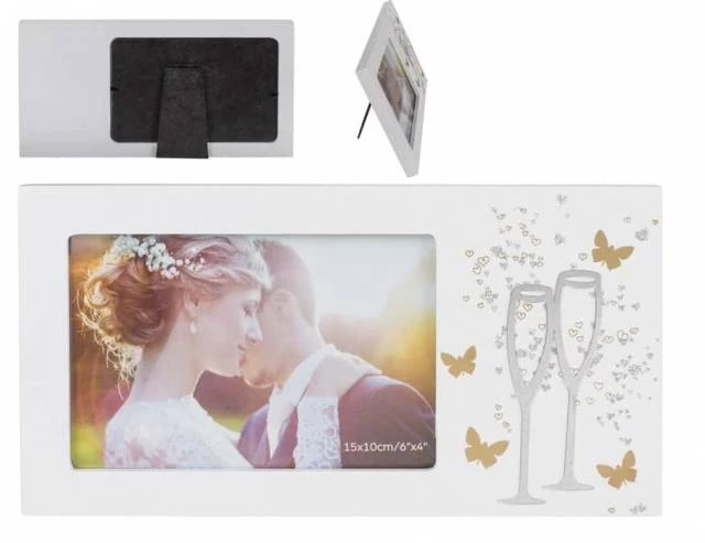 Dieser schöne Holz – Bilderrahmen mit zwei Sektgläsern eignet sich dafür perfekt.