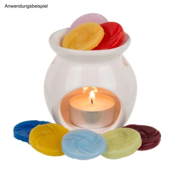 Durch die aufsteigende Wärme des Teelichtes schmilzt das Wachs und die Dutstoffe werden freigesetzt.