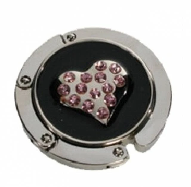Ein kleines silbernes Herz mit Rosanen Steinchen zierht diesen praktischen Handtaschenhalter.