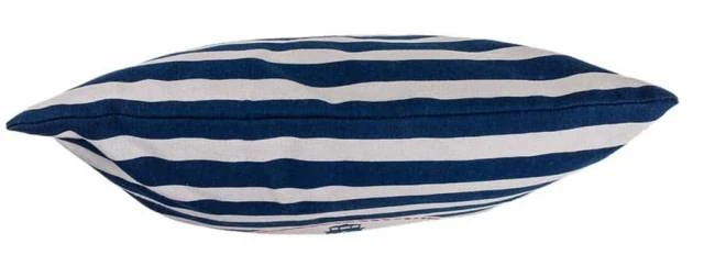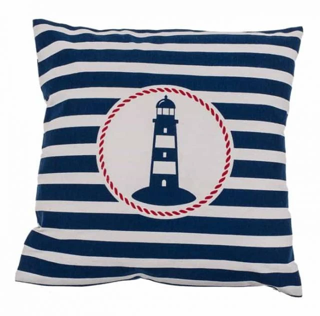 Schönes Martitime Deko-Kissen in Blau / Weiß mit einem kleinen Leuchtturm in der mitte