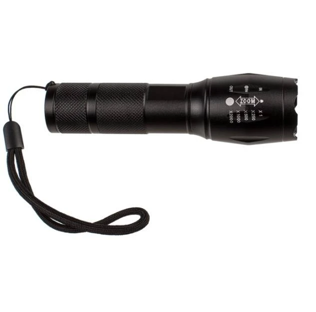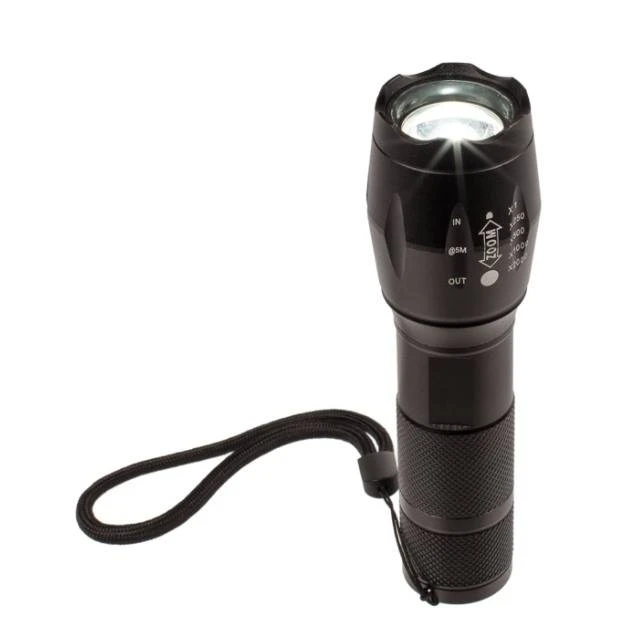 LED Taschenlampe in Schwarz aus Metall mit 4-fach Zoom