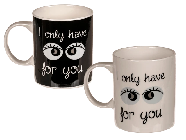 Keramik Becker mit Aufschrift * I only have (Eyes) for you mit einer Größe von ca. 9,5 x 8 cm in der Farbe Schwarz oder Weiß.