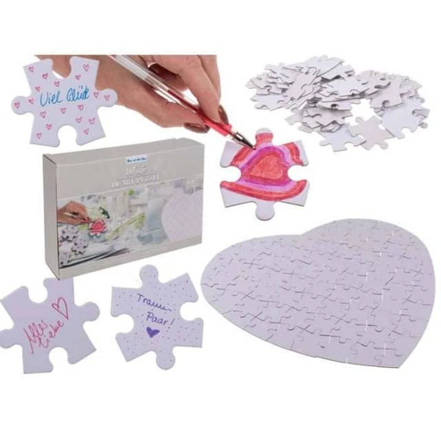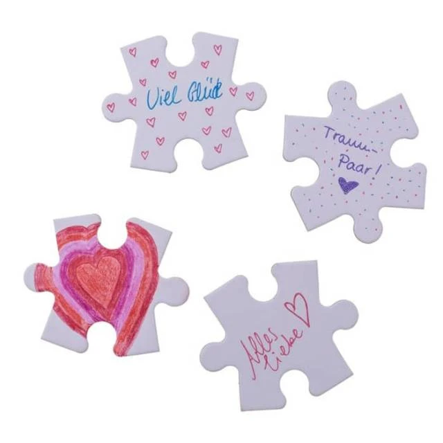 Denn hier gestalten Sie Ihr Puzzle in Form eines Herzes (ca. 60 x 60 cm) ganz alleine indem Sie etwas auf die einzelnen Teile (ca. 80 Stück) schreiben oder malen, ganz einfach mit einem Stift oder Sie kleben kleine Sticker auf jedes Puzzle Teil – die Gestaltung des Herzpuzzles bleibt Ihnen ganz alleine und Ihrer Phantasie überlassen.