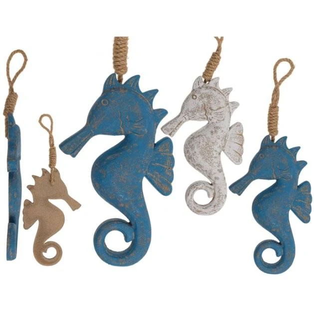 Ein schöner Blickfang im Bad sind diese niedlichen Seepferdchen in Blau oder Weiß mit Juteband zum Hängen.
