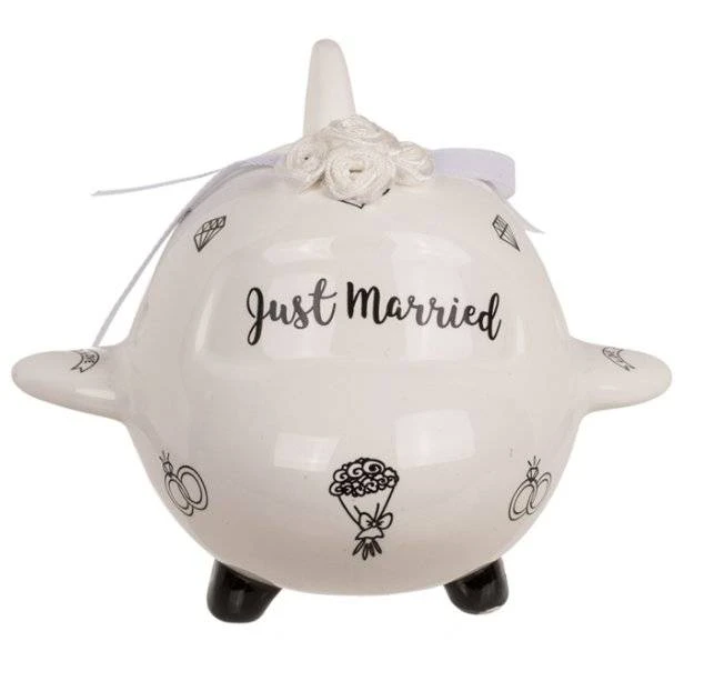 Mit dieser schönen Just Married Spardose als Flugzeug können Sie schon ein paar Euros für Ihre Hochzeitsreise zurück legen.