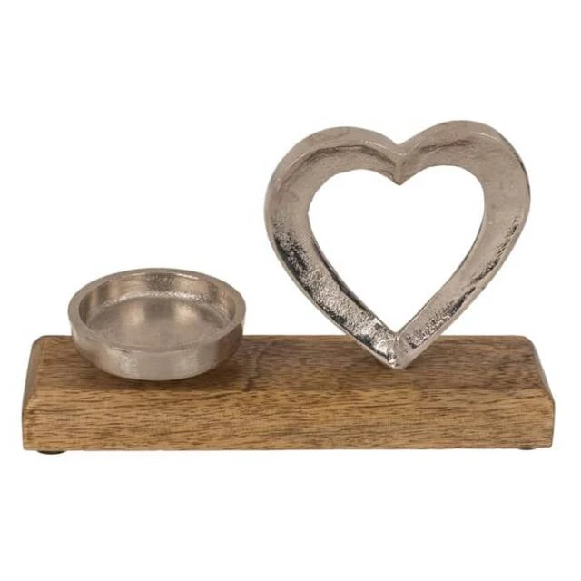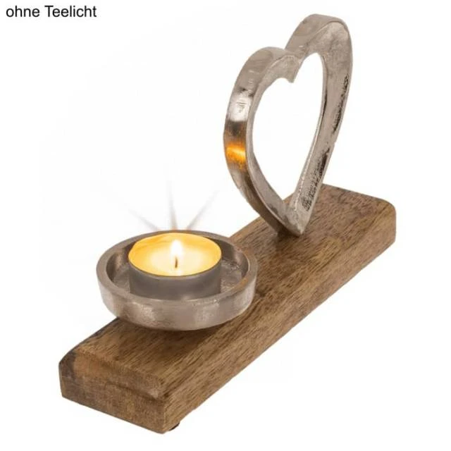 Dabei ist das Herz und der Teelichthalter aus Metall gefertigt, was auf einem schönen Holz-Standfuss befestigt ist.