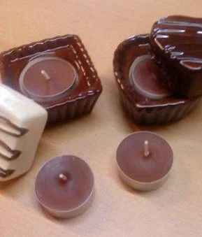 In Pralinenform sind diese beide Teelichthalter aus Keramik in dem Sie ein Teelicht schön plazieren können. Wenn Sie den Deckel der Pralinenförmigen Teelichthalter verschließen haben Sie eine schöne Deko für Ihren Wohnzimmer- oder Garten Tisch. Im Paket enthalten sind zwei Teelichthalter in Pralinenform und 4 Teelichter mit Schoko Duft was alles zusammen in einer Geschenkverpackung verpackt ist.