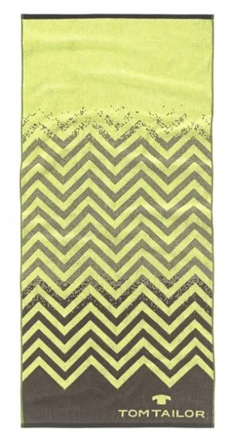 Großes Duschtuch aus dem Hause Tom Tailor in Lime mit Zick Zack Design in einer Größe von ca. 70 x 150 cm.