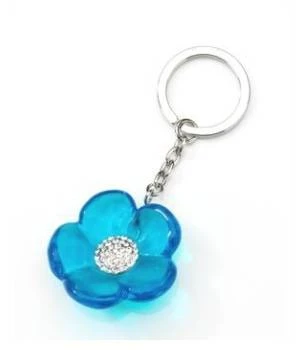 Blumenförmiger Schlüsselanhänger Blau – Twinklets Blue Bliss mit Swarovski Kristallen in der mitte aus flexiblen Kunstoff in der Größe ca. 45mm. Schlüsselring und Kette sind aus vernickeltem, rostfreiem Edelstahl.
